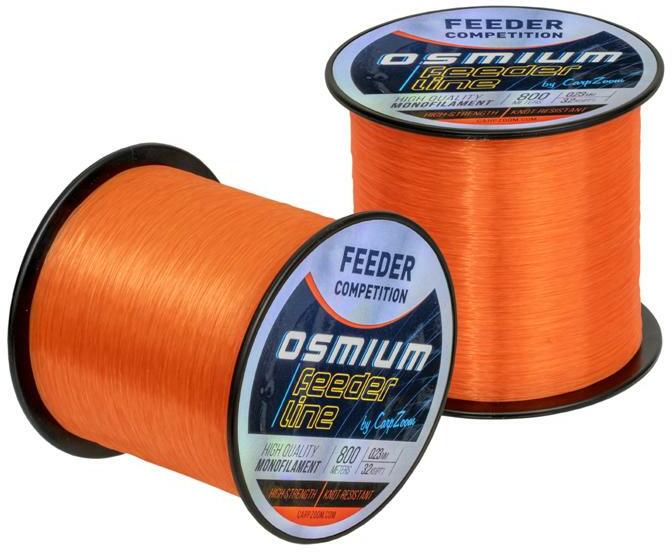 Osmium Feeder zsinór a Carp Zoomtól Japán alapanyag felhasználásával készült, nagy teherbírású, csomótűrő Osmium Feeder zsinór. Alacsony nyúlásának köszönhetően tökéletes a feeder horgászathoz, a legapróbb kapást is azonnal közvetíti a spicc felé. A spulnira 800 méter zsinór került, így akár nagy zsinórkapacitású orsók is megtölthetőek vele. Az Osmium Feeder