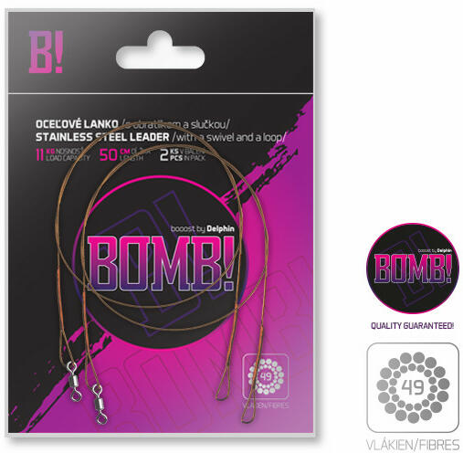 A BOMB! pergető acélhuzal a Delphintől, mely hihetetlen de 49 rozsdamentes szálból van fonva (megjelölése 7x7). Ez a huzal speciális a lágyságával és a rendíthetetlen ellenálló képességével az éles fogak és akadályokkal szemben. A tulajdonságainak köszönhetően bármilyen tevékenység könnyű és kellemes. Ráadásnak a tulajdonságainak köszönhetően lehetővé teszi a