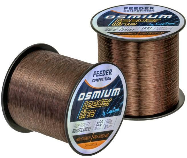 Osmium Feeder zsinór a Carp Zoomtól Japán alapanyag felhasználásával készült, nagy teherbírású, csomótűrő Osmium Feeder zsinór. Alacsony nyúlásának köszönhetően tökéletes a feeder horgászathoz, a legapróbb kapást is azonnal közvetíti a spicc felé. A spulnira 800 méter zsinór került, így akár nagy zsinórkapacitású orsók is megtölthetőek vele. Az Osmium Feeder