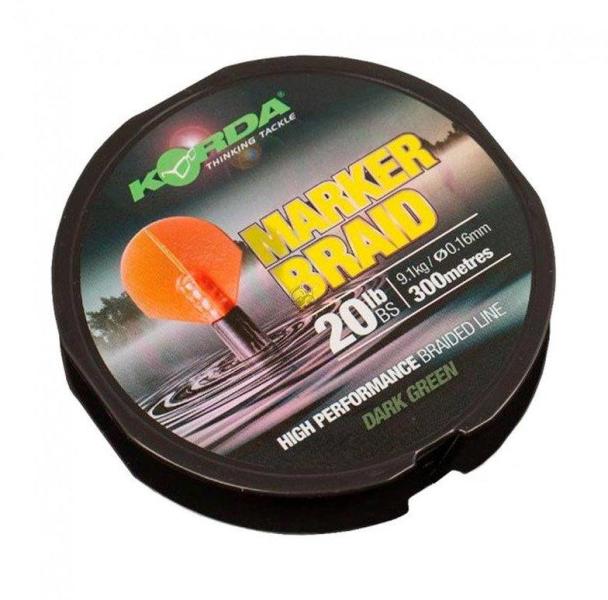 A Korda Marker Braid fonott zsinór kifejezetten a Marker úszós horgászatra lett kifejlesztve. Rendkívül alacsony nyúlása miatt, pontosan fel tudjuk mérni vele a mederviszonyokat. Csomótűrő képessége átlagon felüli. Úgynevezett "SUB-green" színben készül, ami sötét zöld színt takar. Vékony átmérője miatt a távoli dobásokra is alkalmas. Korda Marker Braid jellemzői: Ki