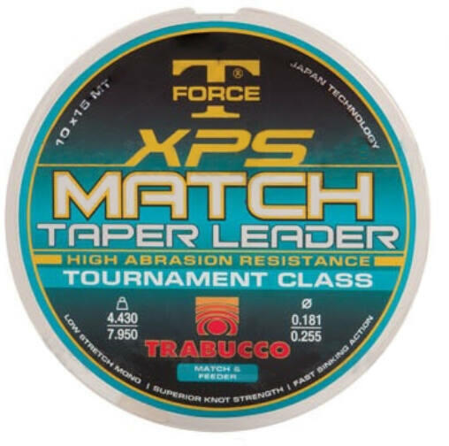 Amikor nagyobb távolságok elérésre a követelmény, akkor nagyon hasznos a távdobó előkék használata, melyek egyik legbriliánsabb tagja a TF XPS MATCH TAPER LEADER, mely átlátszó és gyorsan süllyedő. Ez az előke 15 méter hosszú és speciális kialakítása van. A szerelék felőli oldala a vastagabb 9 m-es szakasszal kezdődik. Ez a hossz elegendő arra, hogy a dobáskor fellép