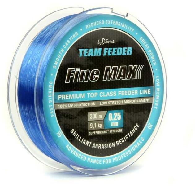 A korábban megjelent By Döme TEAM FEEDER Fine Carp, illetve Fine Max termékekhez most elkészítettük a dizájnban tökéletesen passzoló és azonos módon, a finom pontyos feederhorgászathoz optimalizált Fine Max monofil főzsinór szériát is! A Fine Max zsinór elsődleges ismertetője a színe, amely élénk királykék árnyalatú, akárcsak a névazonos termékcsoport egyéb eszköze