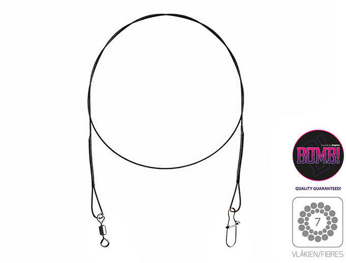 A BOMB! pergető volfrám huzal a Delphintől, mely lágy volfrám szálakból van fonva. Az anyag minőségéből kifolyólag jó vele dolgozni és nagyon ellenálló a sérülések ellen. A lágyságának köszönhetően a csali jól dolgozik a vízben. A BOMB! volfrám huzal egyik végén forgó a másik végén kapocs van, melyek erős font csomóval csatlakoznak. Minden csomagolásban 2 darab