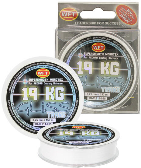 WFT Gliss Monotex Trans fonott zsinór A WFT GLISS KG új fonott zsinór, melyet a WFT fejlesztett ki. A mechanikai tulajdonságai a fonott zsinórnak nagyon hasonlítanak egy monofil damilra, ugyanakkor a terhelhetősége kb 4-szer nagyobb! Felülete nagyon sima és tökéletesen kerek , mivel a szövése nagyon sűrű, nem szívja magába a vizet, így minden dobás után tökéletesen tekercsel