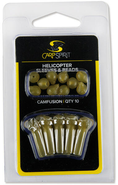 Ólombetétes vagy bevonatos előkére készülő biztonsági helikopteres szerelékekhez. A helikopter gyöngy kissé keményebb gumiból van, hogy csillapítson és védje az előkekapcsot fárasztás közben, a puhább tetejű gyöngy pedig szakaszolt belső furattal készül, hogy zsinórszakadás esetén simán átcsússzon az előkén. A terep- és a hínárzöld szín sokféle tófenékhez