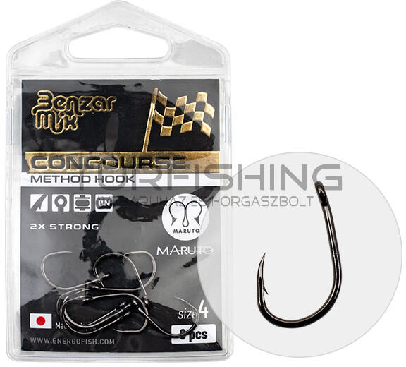 Benzar Mix Method Strong 2X horog Ha method feeder horgászat, akkor Benzár Mix! A márka már eddig is nagyon sok, a feeder vagy method horgászat során nélkülözhetetlen felszerelést kínált a horgászok számára, azonban 2022-től egy új szintre emelkedik a kínálat, melynek most már szerves részét képezik a japán Maruto cég által gyártott horgok is! Ezek között szinte minden