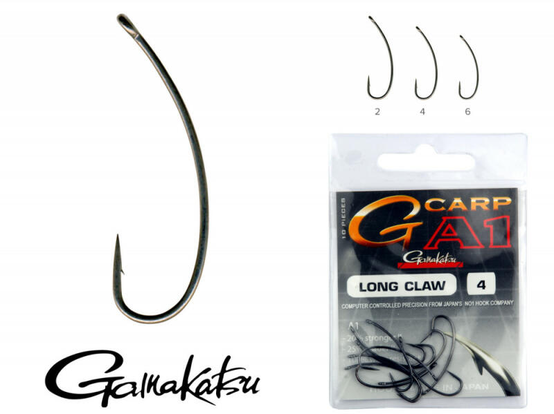 Hosszú szárú, speciális pontyozó horog. A különleges anyagtulajdonságok lehetővé teszik a rendkívül könnyű, mégis erős horgok előállítását. A G-Carp A1 Long Claw horog vékony huzalból készül, nem túl szembetűnő, borotvaéles és befelé mutató horogpontja van. A hosszú, hajlított szár és rövid hegy nagyon erős akadást biztosít. Ideális pontyhorgászathoz sok h