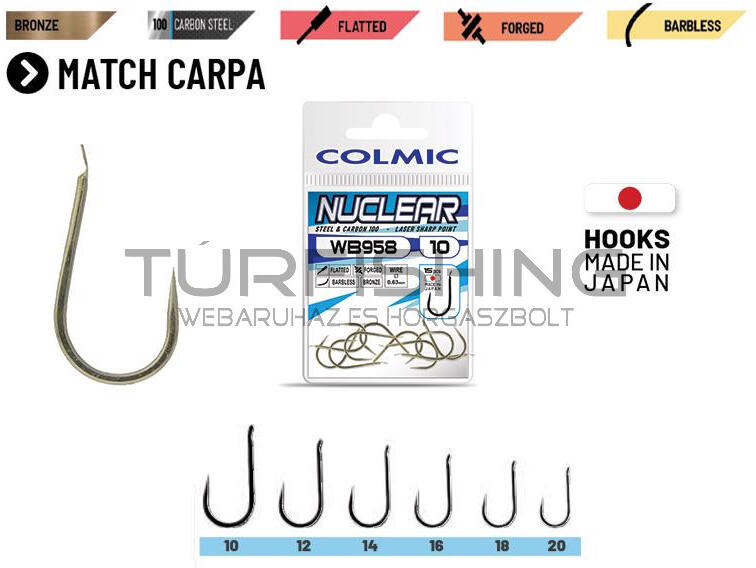 Fekete, erős, síkból kidöntött horoghegyű pontyozó horog. HIGH CARBON STEEL anyagának, formájának köszönhetően igen erős változat. Feederezéshez, fenekezéshez ideális típus. Méret: 12 Szín: Fekete Szakáll: Szakállas Fültípus: Füles Kiszerelés: 12 db/cs