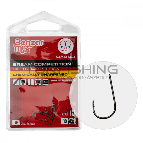 Benzar Mix Bream Competition horog Ha feeder horgászat, akkor Benzár Mix! A márka már eddig is nagyon sok, a feeder vagy az úszós horgászat során nélkülözhetetlen felszerelést kínált a horgászok számára, azonban 2022-től egy új szintre emelkedik a kínálat, melynek most már szerves részét képezik a japán Maruto cég által gyártott horgok is! Ezek között szinte minden h