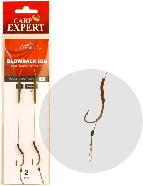 Carp Expert Blowback Rig 4 Fonott Előkötött Horog Strapabíró, 15lb erősségű Nem csak behúzós, hanem dobós pecára A csalit szabadon pozicionálhatjuk A Carp Expert Blowback Rig nagy segítség lehet, azoknak a pontyhorgászoknak, akik nem szeretnek a kötögetéssel bíbelődni! A horogelőke strapabíró, 15lb erősségű fonott zsinórból lett megkötve, a biztos akadásért pedig a