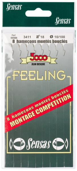 Sensas - Előkötött horog Feeling 3411 Nickel 18cm 22/0,08 8db - Előkötött horog - Monofil előkötött horgok
