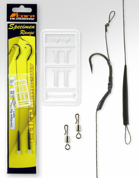 Fonottzsinórral, forgókapoccsal kötött pontyozó végszerelék. A fonottzsinórokra jellemző gubancolódást a kapocsra szerelt szilikoncső akadályozza meg. A kiváló akadást a horogbefordító (aligner) segíti, amely Line Aliger Rig, egyenes szárú horoghoz illeszkedik. A hajszálelőke finomabb beállítását a horogra szerelt átlátszó szilikoncső teszi lehetővé. Méret: 4 Szí