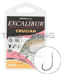 Excalibur Crucian Worm horog A jól bevált, tradicionális pontyozó horog finomított változata, mely mind akadásában, mind éltartásában a legjobbak közé tartozik. Univerzális forma, így a megfelelő méretet kiválasztva, az úszós horgászattól kezdve, a feederezésen át az etetőkosaras fenekező horgászatig széles körben használható, így érdemes tartani belőle a horgos d