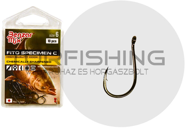 Benzár FITO Specimen-C horog Busát szeretnél fogni? A Benzár termékek kínálatában már nagyon sok különböző, kifejezetten a busa sportszerű horgászatához készített termék áll rendelkezésre. Ezek legújabbika a busázó horog. Egy nagyon erős típusról van szó, ami nagyon hatékonyan be tud hatolni a busák csontos szájába és megtartja akár a legnagyobb példányokat is.