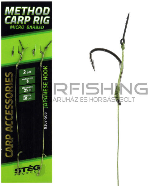 Előkötött method feeder horog, fonott zsinórral, horogtüskével. Stég Product japán mikroszakállas horoggal készített, ideális methodos sorozata. Mindazok számára, akik nem szeretnek a kötésekkel foglalkozni, ez a szerelék bevetésre kész! Minimum rendelés: 10 db Méret: 8 Szín: Fekete Szakáll: Szakállas Fültípus: Füles Előke: 10 cm / 25 lb Kiszerelés: 2 db/cs