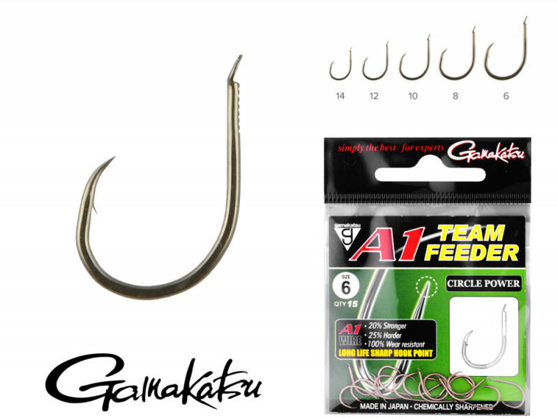 Új formavilág az A1 Team Feeder családban a Circle Power, ami a nevéből adódóan is egy kerekded modell. Az igazi kuriózum mégsem a kereksége, hanem a horog hegyének állása, az ugyanis erősen visszahajlik. A tűzött csaliknál előnyös ez leginkább, amikor csak a horog hegye van ki a csaliból, mert ez a visszahajtott tűhegy azonnal fogást talál a hal szájában, és addig tart,