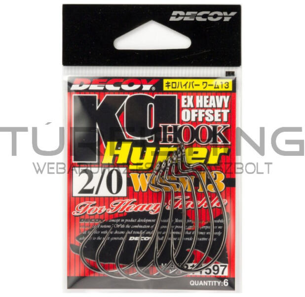 Decoy Worm13 EX - Extra Strong Ns Black offset horog Ez egy EX - extra erős - offset horog, amely kompatibilis az olyan stílusokkal, amelyek túlmutatnak az sima - átlagos 5-10 grammos horgászaton, mint például 30-40 grammos cheburashka vagy texas szerelékkel, terjedelmes férgekkel, és plasztikokkal való horgászatkor. A horgok japán kovácsolt acélból készülnek, fekete nikkel bevon