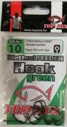 Japánban gyártott, a method feederes pontyhorgászathoz kifejlesztett horgok. Nagy öblű, megfelelően erős szárú, enyhén kihajtott, kiváló éltartó tulajdonságú, kémiai élezésű, teflon bevonatú mikro szakállas, füles horog. Elsősorban csalitüskés, vagy fűzött csalikhoz ajánljuk, legyen az pellet, wafters, bojli, vagy akár magvak. Három méretben és három színű bevon