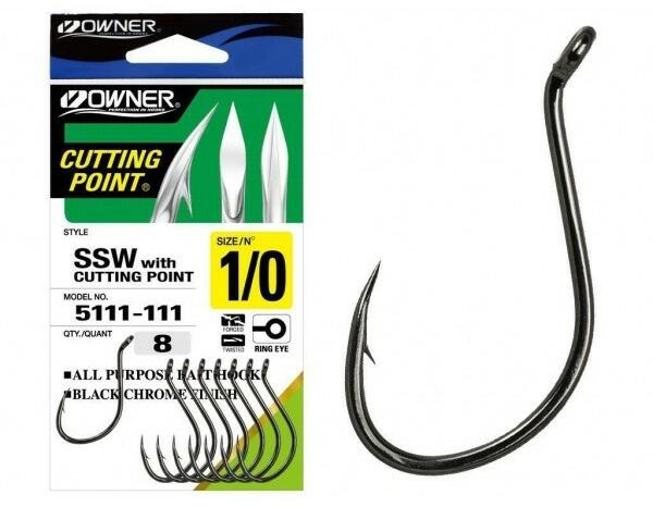 OWNER 5111 CUT SSW horog lándzsa hegykialakítást kapott, minek eredményeképp kisebb erőhatás következtében is szinte akadálytalanul hatol a megakasztott hal szájába, biztosabb akadást eredményezve. Fekete színű horog, hegye a horog síkjából enyhén ki van billenve szintén az akadást elősegítendő. Kisebb méretekben ponty vagy amúr horgászok részesítik előnyben, míg a