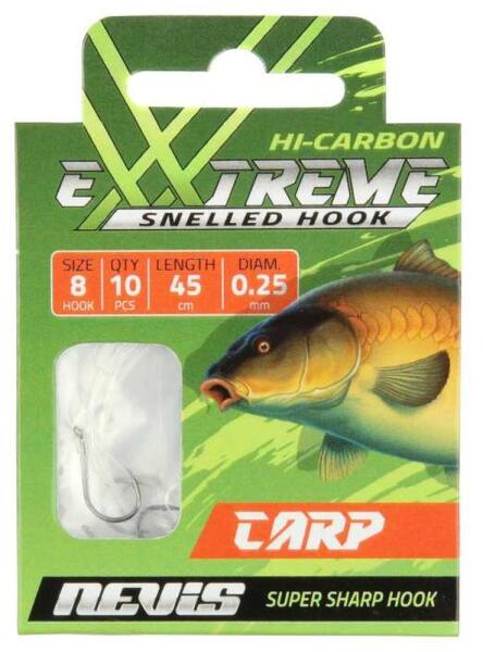 Előkötött horog a Nevis kínálatában. Pontyozó horgászok számára. Horog: 8 Előke hossz: 45 cm Előke: 0.25 mm Kiszerelés: 10 db/cs
