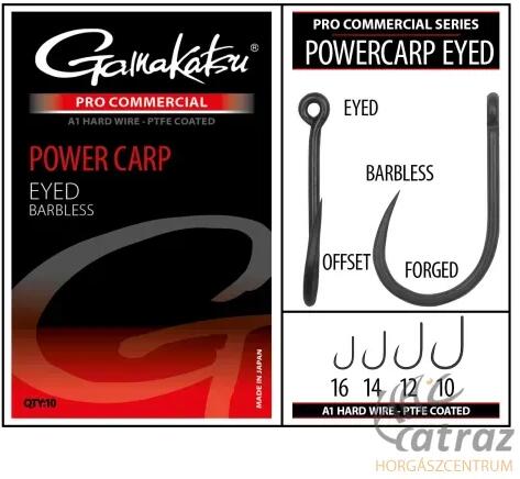 Gamakatsu Powercarp Eyed A1 PTFE Barbless Méret: 12 - Gamakatsu Szakáll Nélküli Feeder Horog A Gamakatsu feeder horgok kiváló minőségű, megbízható és népszerű horgok a feeder horgászat területén. Ezek a horgok a japán Gamakatsu cég által gyártott termékek, és a kifinomult tervezésüknek és kivitelezésüknek köszönhetően kiváló teljesítményt nyújtanak a feeder horg