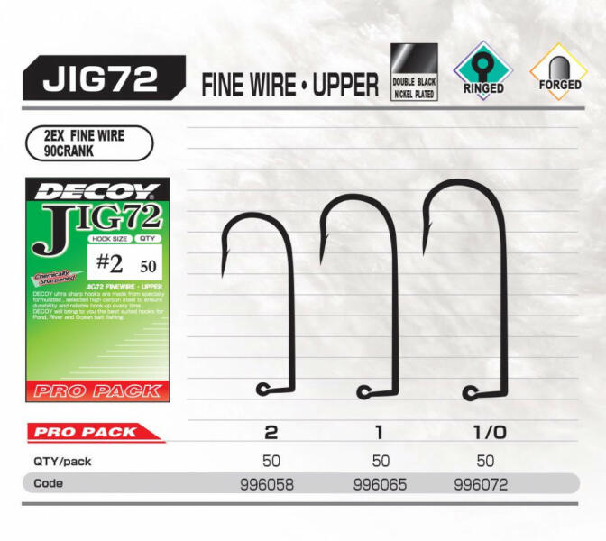 A legfejlettebb horgok közé tartozik a Decoy Worm 220 Cover Finesse HD. A szöget, a hajlítást, a vastagságot és a horgot gondosan átgondolták és mikro pontossággal állították be, hogy a lehető legjobb eredményt érje el a halak elleni küzdelemben. A horgokat független tudományos keménységi és szilárdsági vizsgálatoknak is alávetették, és az eredmények megerősítették
