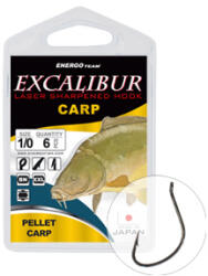 Az Excalibur horogcsalád prémium kategóriába tartozó tagja, mely minden részletében megbízhatóságot, erőt és kimagasló minőséget képvisel. Elsősorban pelettel és bojlival történő csalizáshoz ajánljuk. Ahogy a kihajtott horoghegy, úgy a horog szárához képest jelentősen megdöntött fül és a speciálisan öblös forma is a fűzött csalik esetén történő, szinte 100