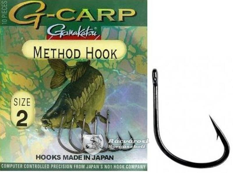 A Gamakatsu G-Carp Method Hook a Gamakatsu gyár legújabb fejlesztésű, a horoggyártás csúcsát reprezentáló, új generációs horogcsalád. Kifejezetten nagyhalas horgászatra készített és olyan körülmények között tesztelt típusokról van szó, amelyek minden horgász igényét kielégítik. A tesztek során a világ leghíresebb ponty és nagyhal specialistái vettek részt. A pr