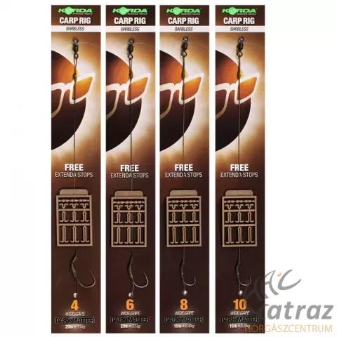 Korda Dark Matter Rig Size:6 Barbless Előkötött horog a Korda kínálatából Szakáll nélküli kivitel Korda Dark Matter fonott zsinórra kötve Zsinór szakítószilárdság: 20 Lb Horogméret: 6-os Kiszerelés: 1 db/csomag Stoppert tartalmaz a csomag