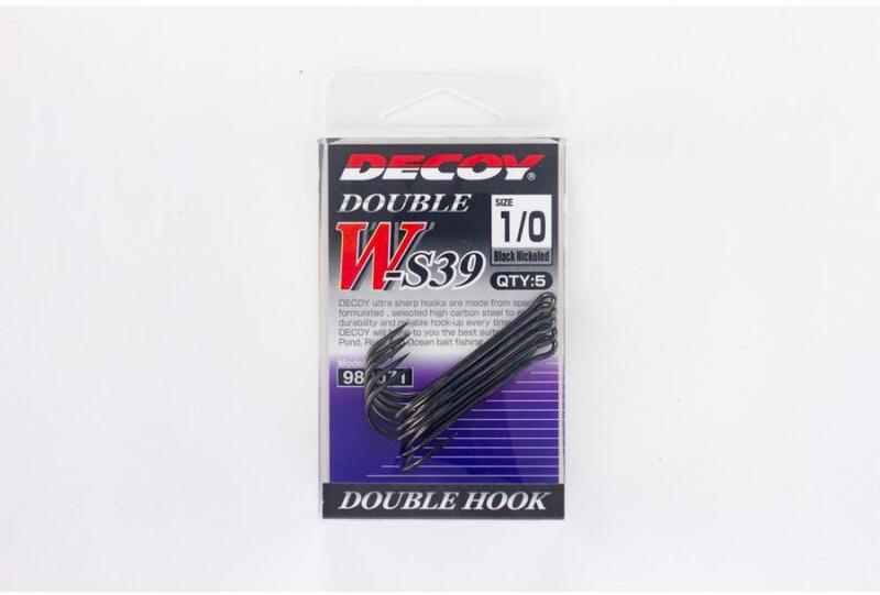 A W-S39 kétágú horgok a legmagasabb minőségű, hidegen kovácsolt szénacélból készülnek. A horgok éles hegyekkel rendelkeznek, melyek hosszú ideig megőrzik alakjukat és élességüket. A nikkelezett felület ideális víz alatti álcázást és korrózió elleni védelmet biztosít.