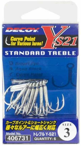 A Decoy hármas horgok a legjobb anyagok és a legmagasabb szintű technológia optimális kombinációjával készülnek. Ezek lehetővé teszik a horog extrém igénybevételét anélkül, hogy az elhajlana vagy eltörne. Magas széntartalmú, kovácsolt acélból gyártják őket. Ezen kívül a hegyet egy speciális technológiával élezik, ami hosszú élettartamot biztosít. A Decoy Y-S21 s