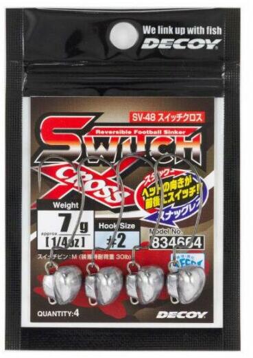 A prémium minőségű termékeket gyártó Decoy újraértékelte az egyensúlyt a horog és az ólom között, majd megalkotta az SV-48 Switch Crosst. Ez a jig fej lehetővé teszi, hogy a horgász a sósvízi fajok széles skáláját megcélozhassa. Használata egyszerű, ezért kezdőknek is ideális. A kényelmes horogcsere mellett, a fej gyors cseréjével a műcsali akcióját is helyzetne