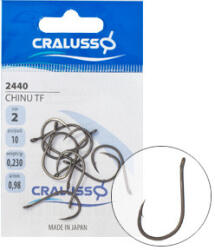 A pontyhorgászok által egyik legkedveltebb forma a Chinu TF füles horog, mely teflonhoz hasonló bevonattal rendelkezik, ami rendkívül sima felületet és különleges tapintást biztosít a Chinu TF füles horognak. Nemesacél felhasználásával készült Chinu TF füles horog hegye kiváló, öblét kovácsolt, enyhén lapított módon alakították ki, hogy karcsúbb, és még erősebb le