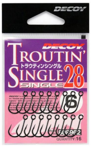 Gyártó: Decoy Modell: Single-28 Troutin' Single Horog méret: #8 Szín: fekete Kiszerelés: 16 db/csomag Származási hely: Japán A Decoy Single-28 Troutin' Single egy kiváló minőségű, rendkívül éles horog, amelyet kifejezetten pisztráng horgászathoz terveztek. Az egyedi kialakításának köszönhetően könnyedén használható, és segítségével biztosra mehetsz a jó méretű pi