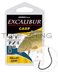 Az Excalibur horogcsalád prémium kategóriába tartozó tagja, mely minden részletében megbízhatóságot, erőt és kimagasló minőséget képvisel. Elsősorban pelettel és bojlival történő csalizáshoz ajánljuk. Ahogy a kihajtott horoghegy, úgy a horog szárához képest jelentősen megdöntött fül és a speciálisan öblös forma is a fűzött csalik esetén történő, szinte 100