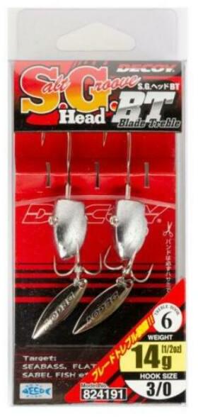 A Decoy SV-34BT S. G Head BT jigeket szénacélból készült japán horgokra öntik, amelyeket egy speciális kémiai technológiával éleznek. Minden egyes horog egyedileg elektronikusan tesztelt, a csalik széles választékával való horgászatra alkalmas. Mindenfajta ragadozó hal horgászatára használják édes- és sós vízben egyaránt.