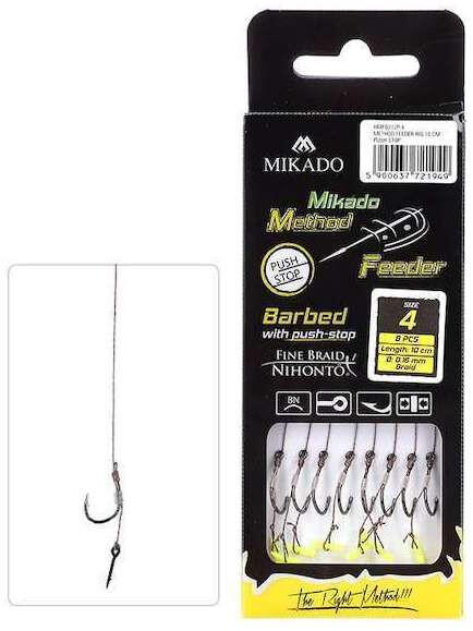Fonott zsinórral szerelt feeder előke. Szakállas, Feeder Special horoggal, csalitüskével. Horog: 10 Tüske: 7 mm Előke hossz: 8.5 cm Előke átmérő: 0.12 mm Előke szakítószilárdság: 9.9 kg Kiszerelés: 5 db