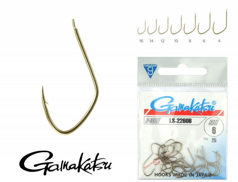 G-Carp sorozat speciális, barna bevonatú szériája. Hosszú, egyenes szárú változat. A modern pontyhorgászat elengedhetetlen kellékei a tökéletes minőségű horgok. A Gamakatsu folyamatosan fejleszti a pontyozó horogszériáit is ennek köszönhetően dobta piacra a Camou bevonatú horgait. A zöld bevonat a növényzettel benőtt vizekre a homok színű pedig a homokos köves aljú vi