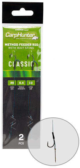 Mivel a mai pelletek egyre nagyobbak, a horgoknak is szélesebbnek kell lenniük. Ezért a széles nyílású horog kialakításon túlmenően, tovább növeltük a hegy és a szár közötti távolságot, egy oldalsó hajlítással. A füles kialakítása a horog orientációjának köszönhetően ideálisság teszi feederhorgászathoz, Az eredmény igen lenyűgöző: ez egy egyedülálló horog