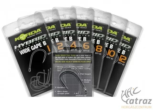 Korda Horog Wide Gape B 8-as Ugyanazokkal az adottságokkal rendelkezik, mint a hagyományos Wide Gape, csak szakáll nélkül és egy kicsivel vastagabb dróttal, hogy jobban tartson. Méret: 8-as Kiszerelés: 10 db/csomag
