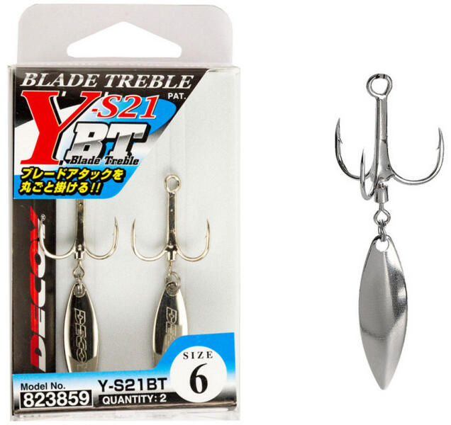 A Decoy Y-S21 BT Rolling Blade Treble egy kiváló minőségű, széles körben használt pergető horgászatra szánt kiegészítő kellék, amely főleg ragadozó halakat, mint például a süllőt, a csukát vagy a balint, céloz meg. A hármas horogba épített ezüst színű, forgó penge kanál és annak a csábító akciója magára vonzza a halak figyelmét, és növeli a kapás esélyeit.