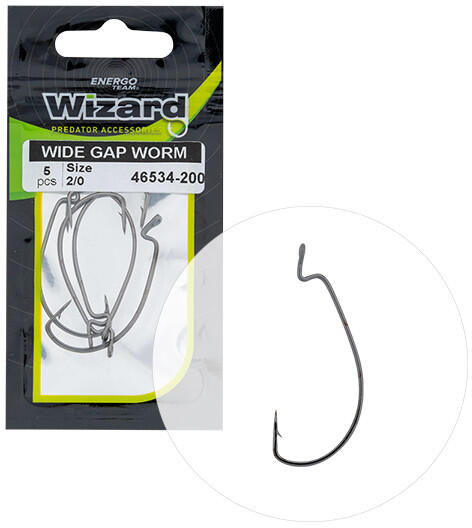 Wizard Wide Gap Worm offset horog Ragadozóhalas, pergető horgászathoz ajánljuk, ezt a kiváló minőségű acélból készült, közepesen vastag húsú, kellően erős offset horgot. Az offset, magyarul védett horgos módszer egyik fontos eleme a speciális kialakítású horog, amelyet a cheburashka fejre kell rögzíteni, hogy utána abba beleolvadjon a plasztik csali. A kémiai eljáráss