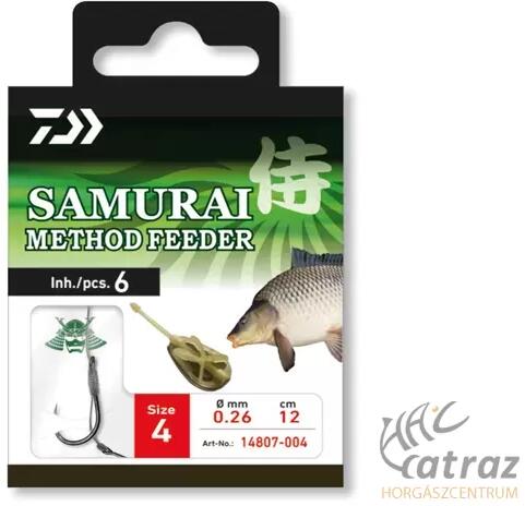 Előkötött Csalitüskés Horog Daiwa Samurai Method Feeder Size:10 Az előkére kötött Samurai horgok a DAIWA mindenféle célhalra szelektált egyedi horgainak kínálata. A magas minőségi sztenderdnek hála ezek biztonságos előkék, ami látható majd a fárasztás és halkiemelés során is. A minőségellenőrzés során minden egyes előkét meghúzva tesztelik. A Samurai előkére k
