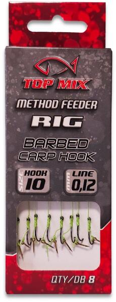 0.12 mm-es fonott zsinórra kötött 12-es szakállas horog, hajszálelőkén 7mm-es csalitüskével.
