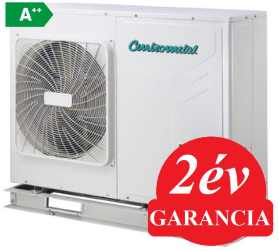 Centrometal Monobloc Heat Pump 5 kW - monoblokk rendszerű levegő-víz hőszivattyú Inverteres kompresszorral szállított korszerű hőszivattyú, magas működési hatásfokkal (COP 4,72) fűtési, hűtési és használati meleg víz előállítási célra. Kiegészítő 3 kW teljesítményű fűtőelemmel. A hőszivattyú üzemeltetése egy fázisú elektromos hálózatot igényel. A hősziva