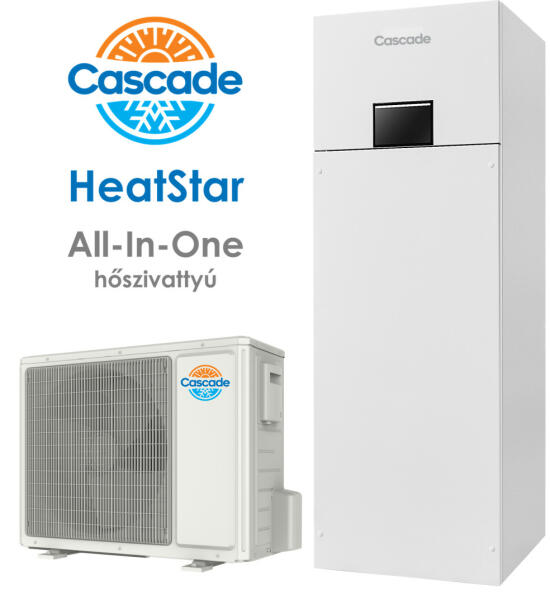 Cascade HeatStar osztott hőszivattyú 6kW + 185l HMV (CRS-CQ6.0PdG/NhH2-E) A CASCADE HEATSTAR levegő-víz hőszivattyúk széles tartományban megbízhatóan és következetesen működnek (fűtés -25 Celsius-fokig, hűtés +48 Celsius-fokig tartós külső hőmérsékleten), és a stabilitás megtestesítői. Főbb jellemzők: Kivétele s energiahatékonyság: A lenyűgöző A+ energetikai be