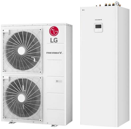 Split levegő, -víz hőszivattyú, Egyfázisú hálózatra köthető, Fűtési/Hűtési teljesítmény:14/12kW Az új 2022-es LG Therma-V HN1616M. NK5 + HU141MA. U33 14kW 14kW split rendszerű levegő, víz hőszivattyú rugalmasan elhelyezhető, egyfázisra köthető inverteres technológiával. A kültéri egységen található 3 irányú csőcsatlakozás és az 50m hűtőközeg vezeték lehet