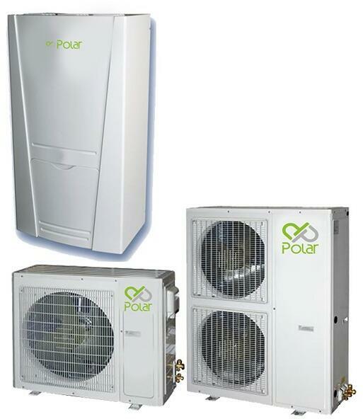 A kültéri egység tartalmazza a kompresszort a ventilátorhoz a légoldali hőcserélővel, amely csatlakozik a hűtőközeg gázvezetéken keresztül a beltéri egységhez. A beltéri egység a hőszivattyú hidraulikus egységét tartalmazza, minden fő beépített részegységgel együtt, mint a nagy teljesítményű keringetőszivattyú vagy a tágulási tartály, a biztonságos és egyszer