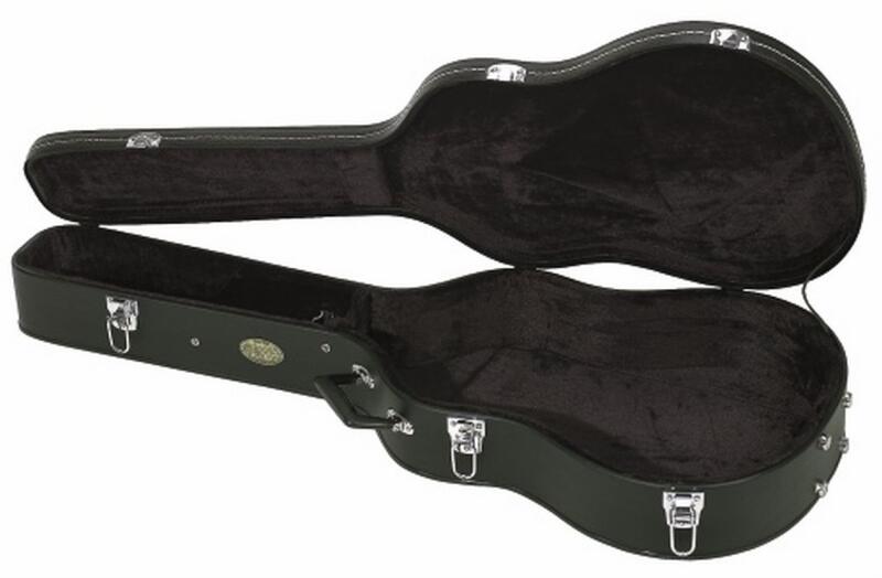 Case type: Molded case Shape: Classical guitar Shell Material: Plywood Finish: Tolex Inner lining / padding: yes Accessory storage: yes Closures: Snap Locks Color/ Finish: Black Weight: 6,88 kg Dimensions (inside): 38,0 x 103,0 x 14,0 cm Body compartment (inside): 38,0 x 56,5 x 14,0 cm Upper bend (inside): 30,0 cm Waist (Inside): 28,5 cm