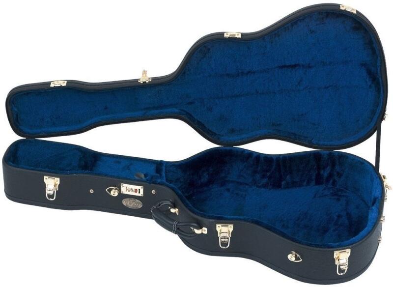 GEWA 523533 Arched Top Prestige Fémhúros Akusztikus 12-Húros Gitártok fából készült váz, stabil, hajlított fedlap, körbe levarrt aranyozott zárak, 1 számzár 2 tetőzsanér 9 fémláb oldalsó akasztük hevederhez (heveder nélkül) kényelmes, puha fogantyú fekete szemcsés műbőrbevonat tartozékfiók tetővel, belső kialakítás kék plüss sárgaréz lemez GEWA-logóval Súly: